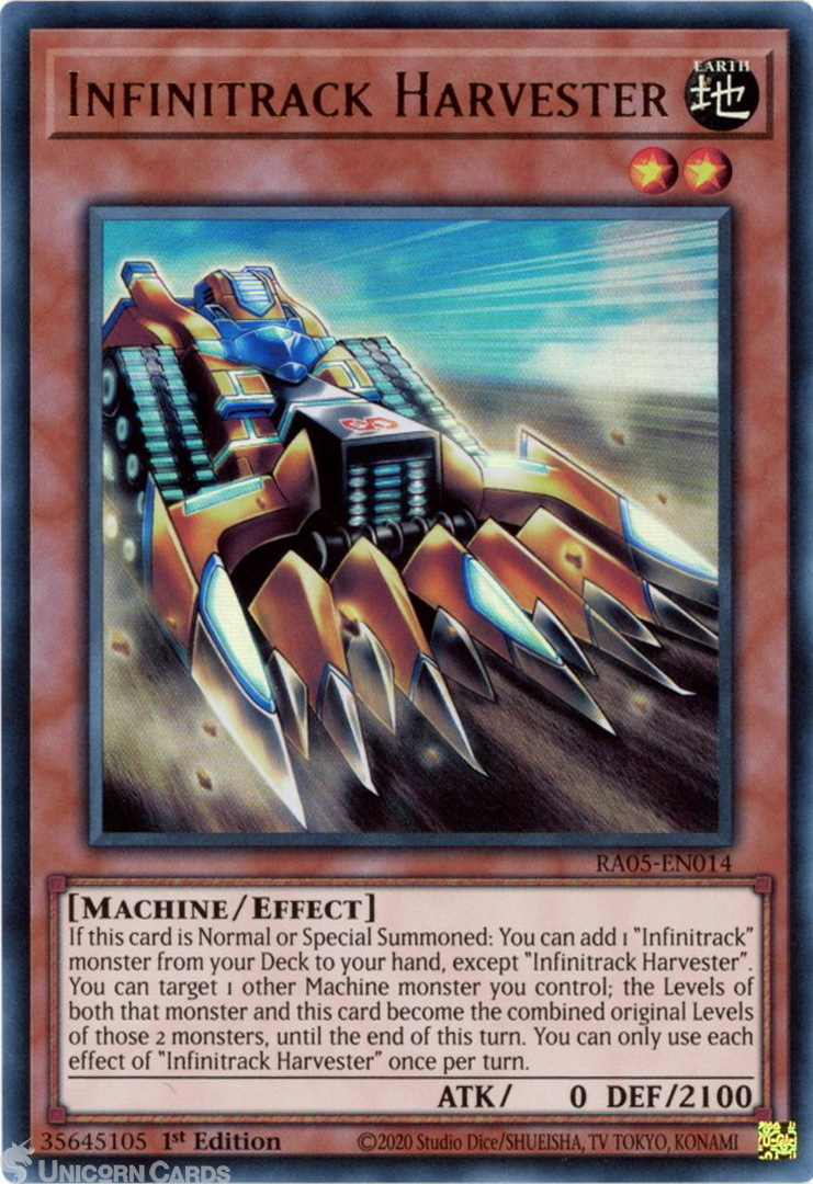 - RA05-EN014 Infinitrack Harvester : Ultra Rare 1st Edition Mint YuGiOh Card