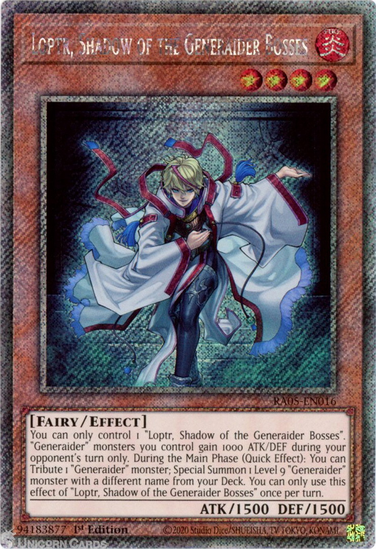 - RA05-EN016 Loptr, Shadow of the Generaider Bosses : Platinum Secret Rare 1st Edition Mint YuGiOh Card
