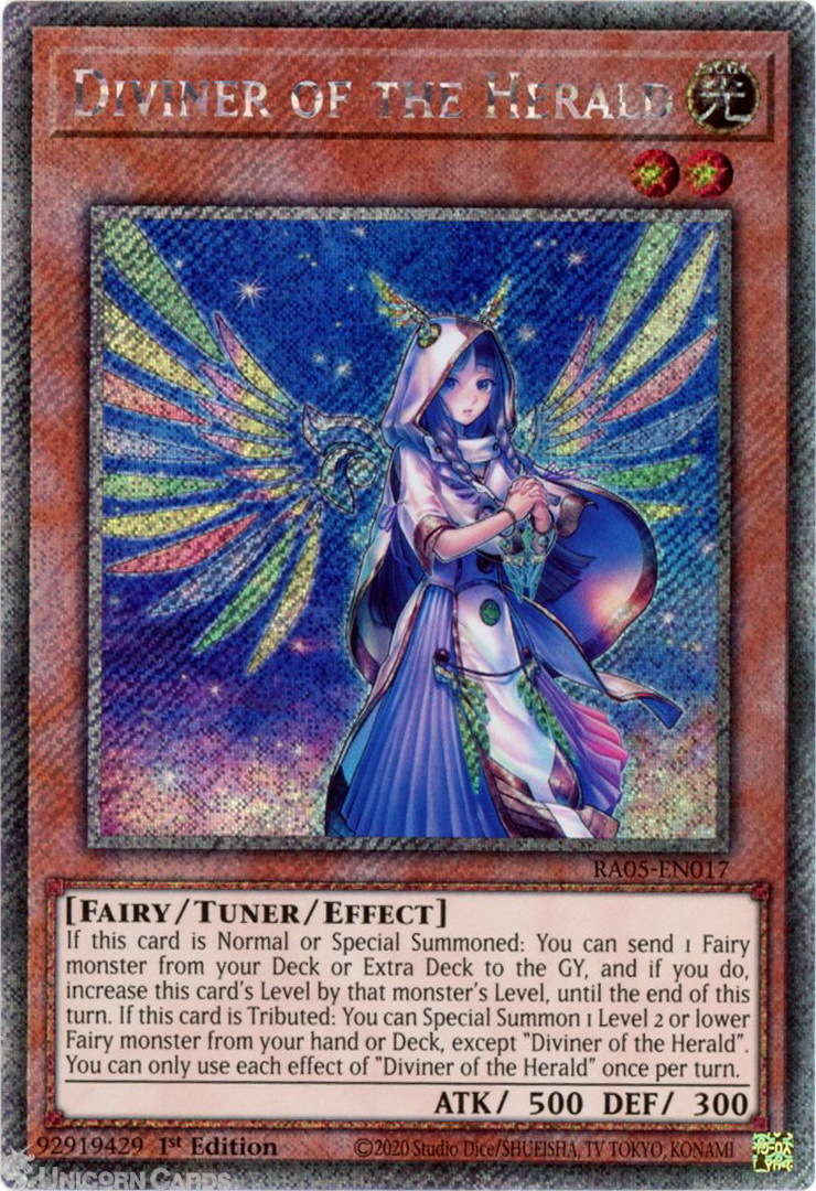 - RA05-EN017 Diviner of the Herald : Platinum Secret Rare 1st Edition Mint YuGiOh Card