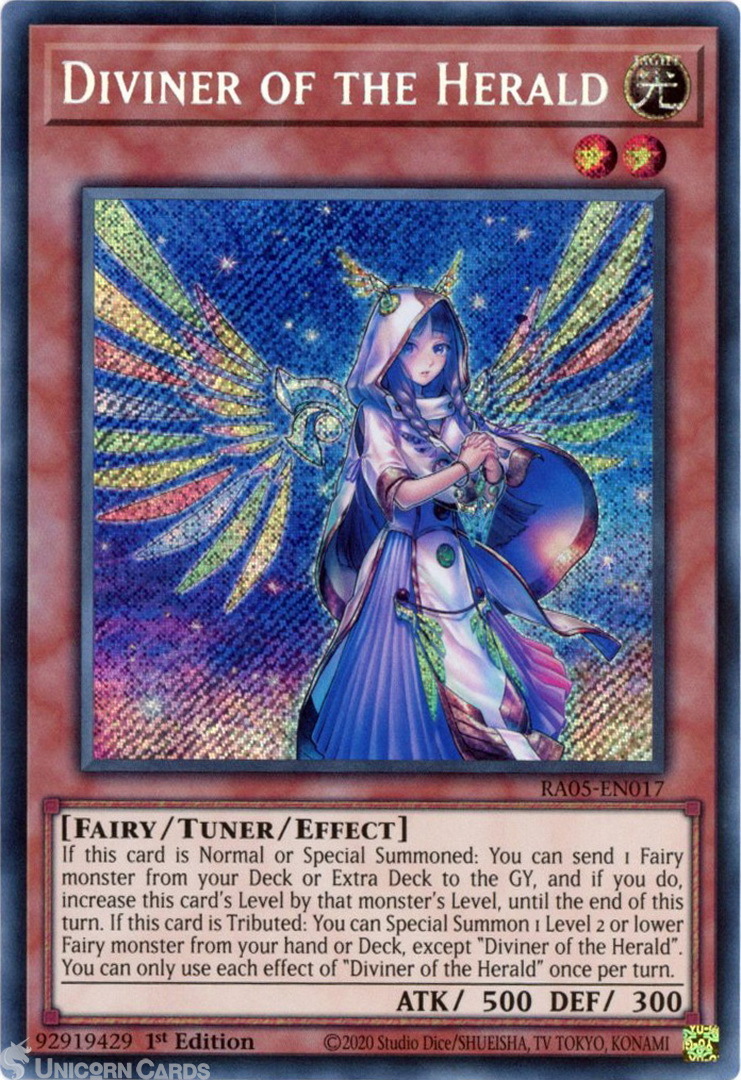 - RA05-EN017 Diviner of the Herald : Secret Rare 1st Edition Mint YuGiOh Card