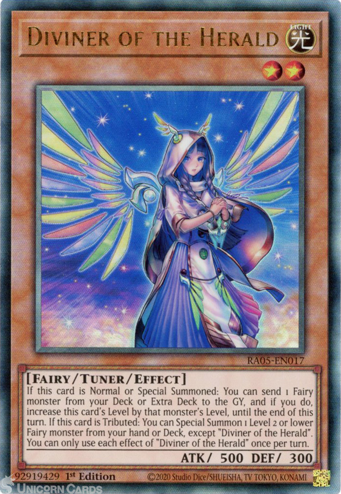 - RA05-EN017 Diviner of the Herald : Ultimate Rare 1st Edition Mint YuGiOh Card