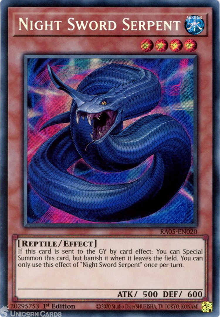 - RA05-EN020 Night Sword Serpent : Secret Rare 1st Edition Mint YuGiOh Card