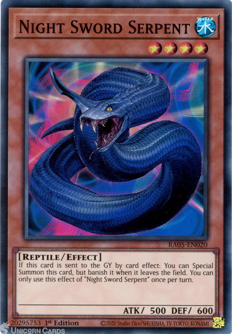 - RA05-EN020 Night Sword Serpent : Super Rare 1st Edition Mint YuGiOh Card