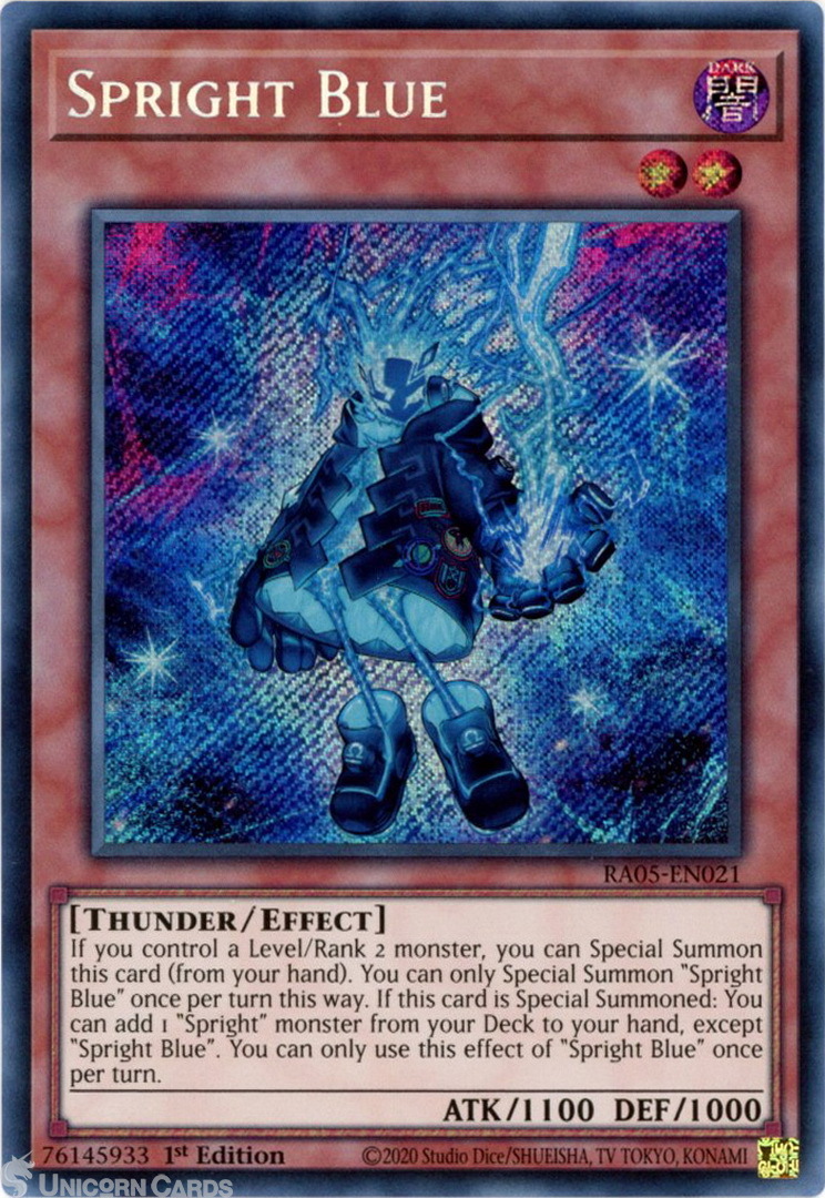 - RA05-EN021 Spright Blue : Secret Rare 1st Edition Mint YuGiOh Card