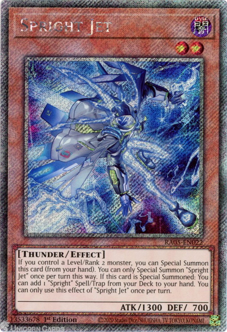 - RA05-EN022 Spright Jet : Platinum Secret Rare 1st Edition Mint YuGiOh Card
