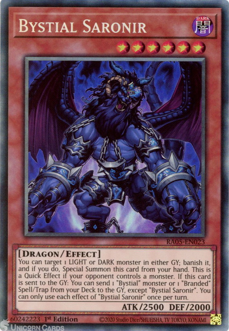 - RA05-EN023 Bystial Saronir : Collector's Rare 1st Edition Mint YuGiOh Card