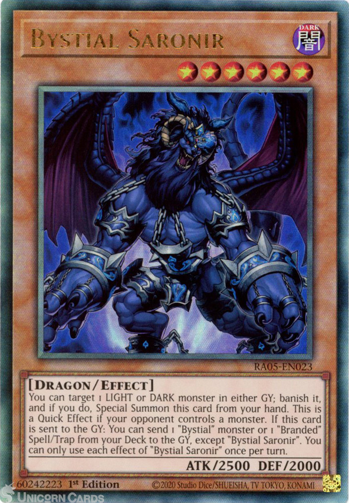 - RA05-EN023 Bystial Saronir : Ultimate Rare 1st Edition Mint YuGiOh Card