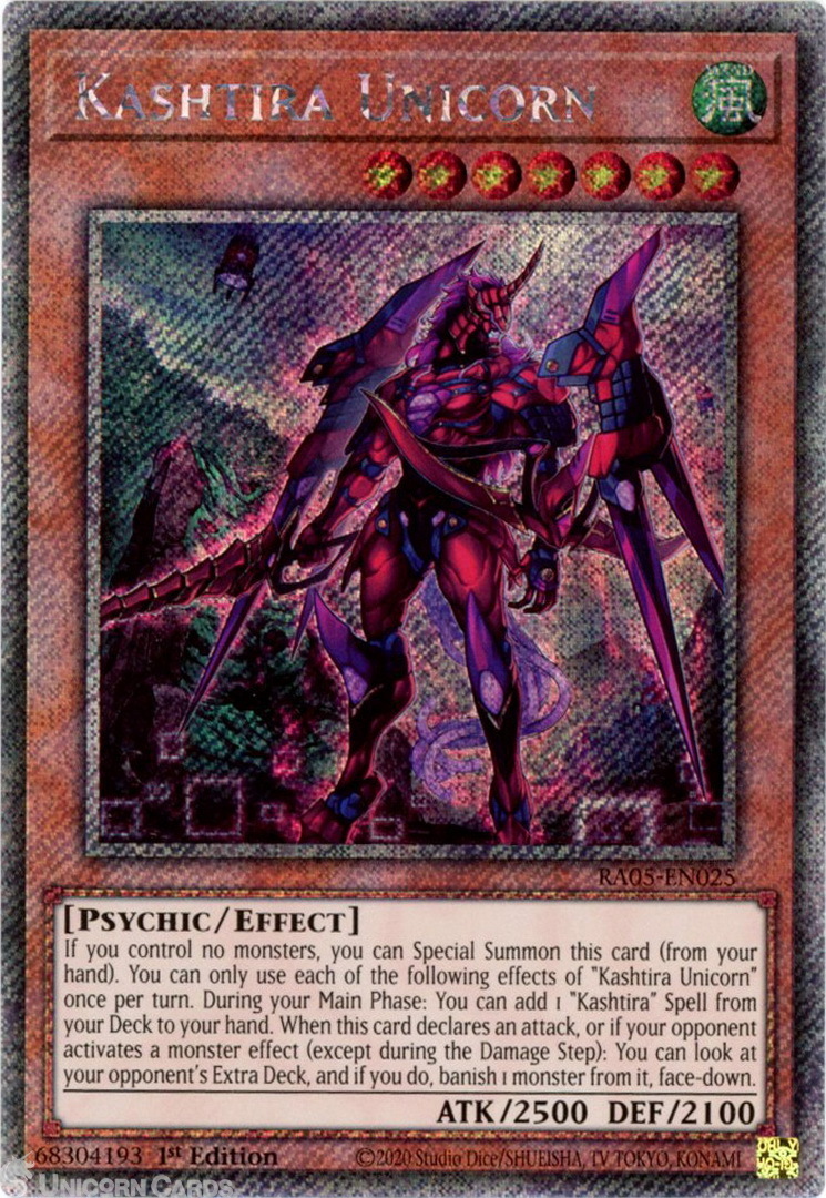 - RA05-EN025 Kashtira Unicorn : Platinum Secret Rare 1st Edition Mint YuGiOh Card