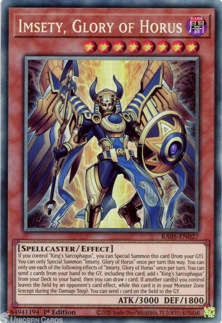 - RA05-EN027 Imsety, Glory of Horus : Collector's Rare 1st Edition Mint YuGiOh Card