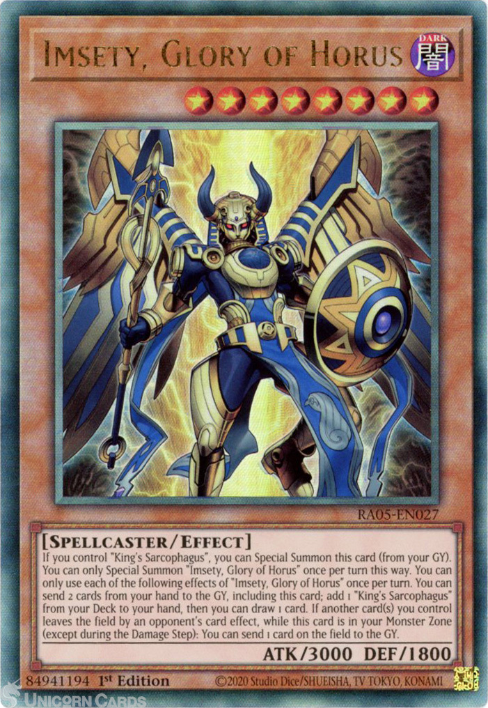 - RA05-EN027 Imsety, Glory of Horus : Ultimate Rare 1st Edition Mint YuGiOh Card