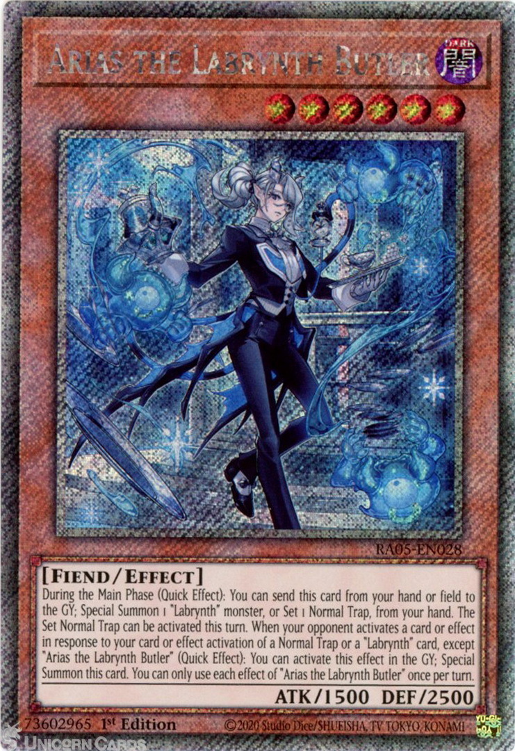 - RA05-EN028 Arias the Labrynth Butler : Platinum Secret Rare 1st Edition Mint YuGiOh Card