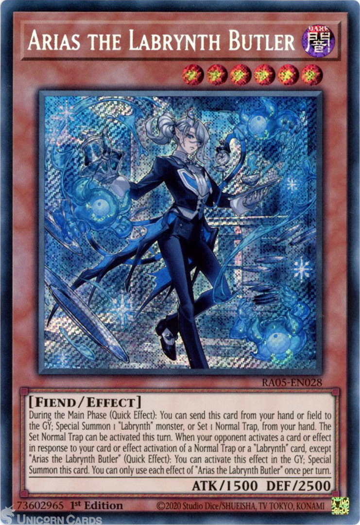 - RA05-EN028 Arias the Labrynth Butler : Secret Rare 1st Edition Mint YuGiOh Card