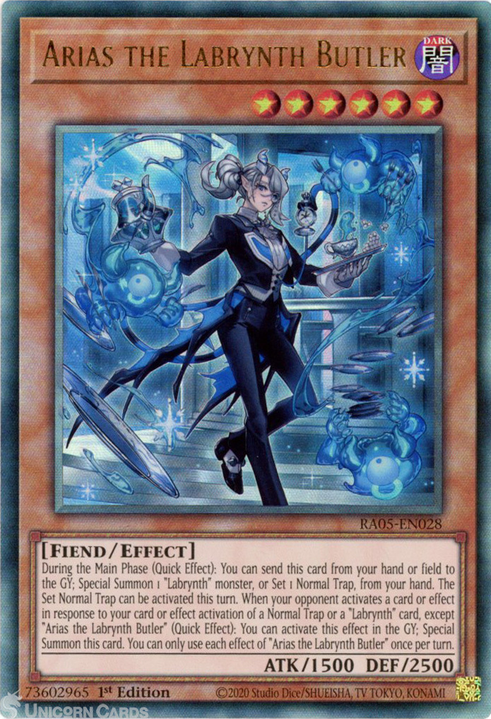 - RA05-EN028 Arias the Labrynth Butler : Ultimate Rare 1st Edition Mint YuGiOh Card