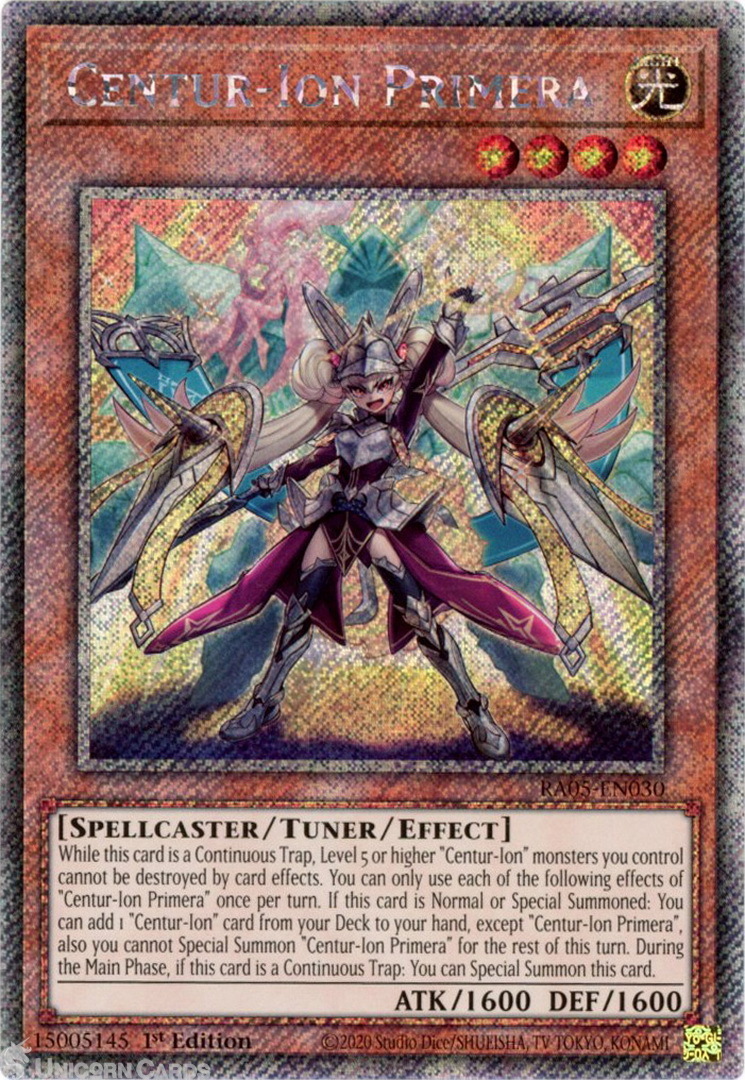 - RA05-EN030 Centur-Ion Primera : Platinum Secret Rare 1st Edition Mint YuGiOh Card