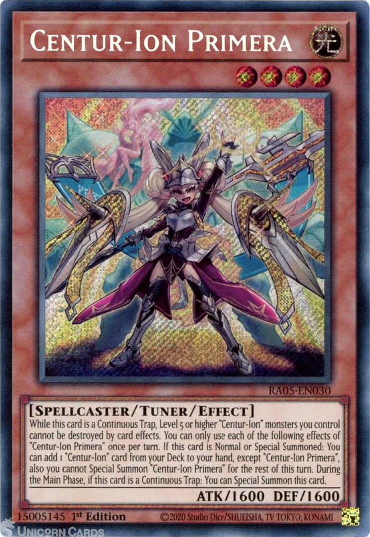 - RA05-EN030 Centur-Ion Primera : Secret Rare 1st Edition Mint YuGiOh Card