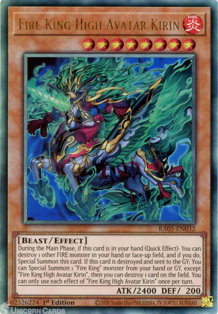 - RA05-EN032 Fire King High Avatar Kirin : Ultimate Rare 1st Edition Mint YuGiOh Card