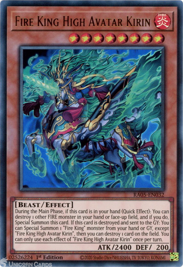 - RA05-EN032 Fire King High Avatar Kirin : Ultra Rare 1st Edition Mint YuGiOh Card