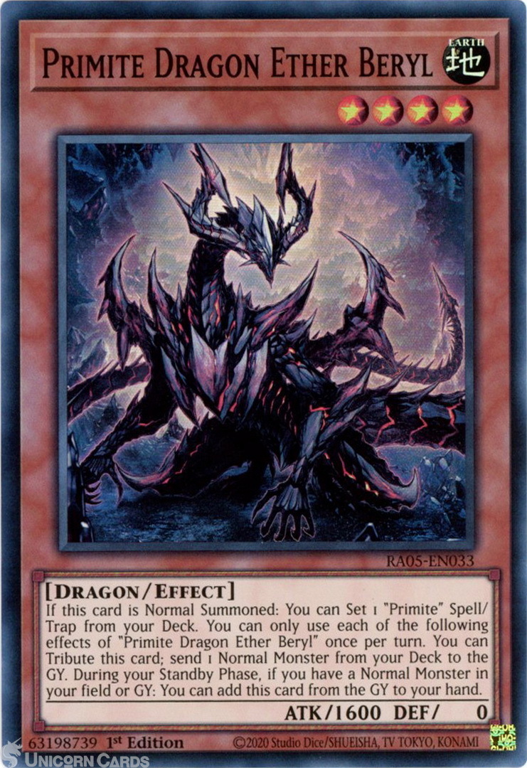 - RA05-EN033 Primite Dragon Ether Beryl : Super Rare 1st Edition Mint YuGiOh Card