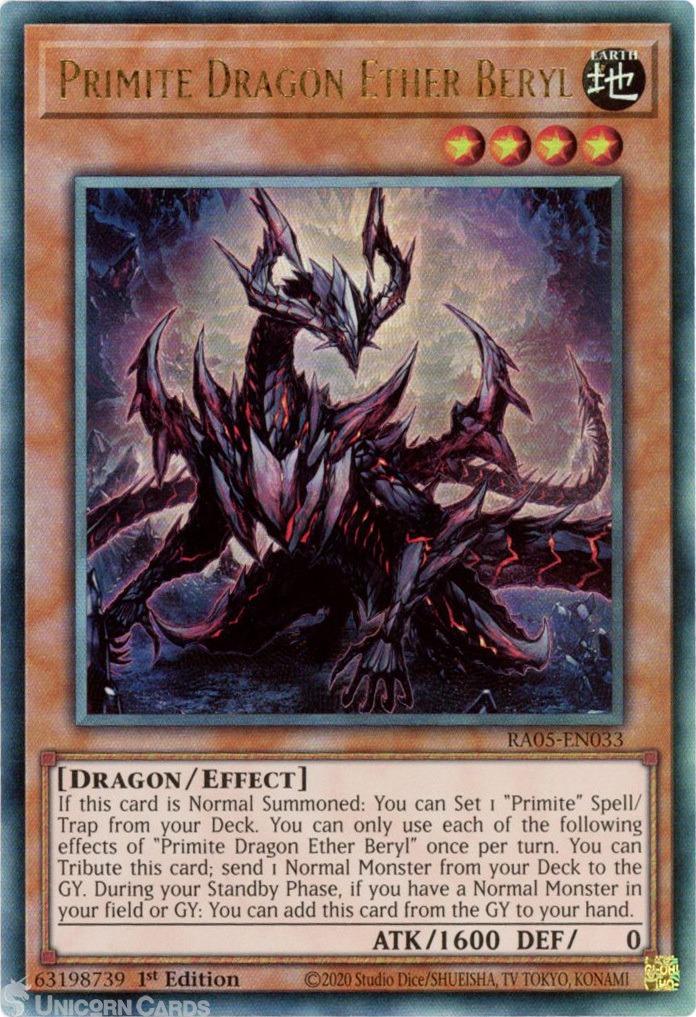 - RA05-EN033 Primite Dragon Ether Beryl : Ultimate Rare 1st Edition Mint YuGiOh Card