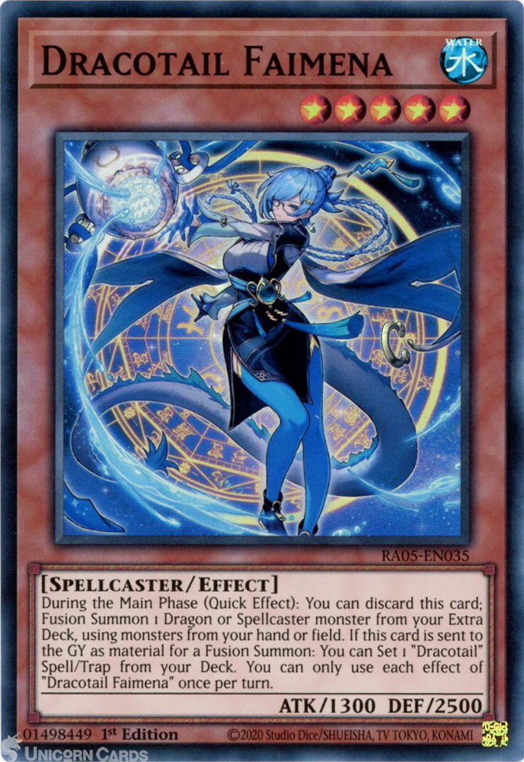 - RA05-EN035 Dracotail Faimena : Super Rare 1st Edition Mint YuGiOh Card