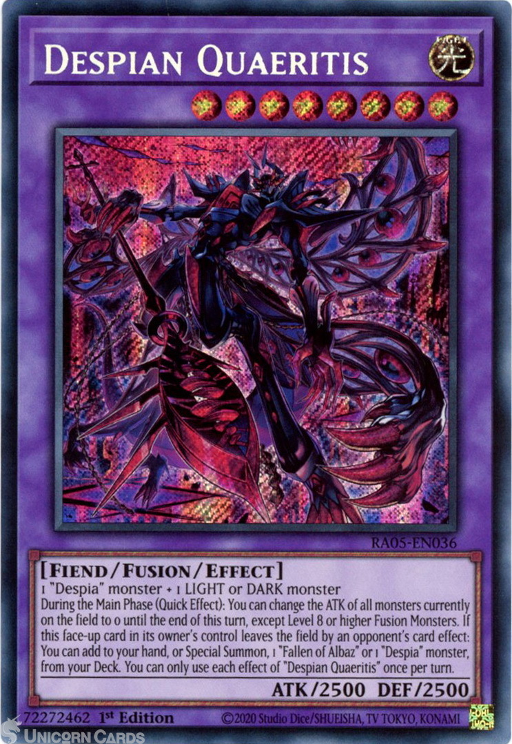 - RA05-EN036 Despian Quaeritis : Secret Rare 1st Edition Mint YuGiOh Card