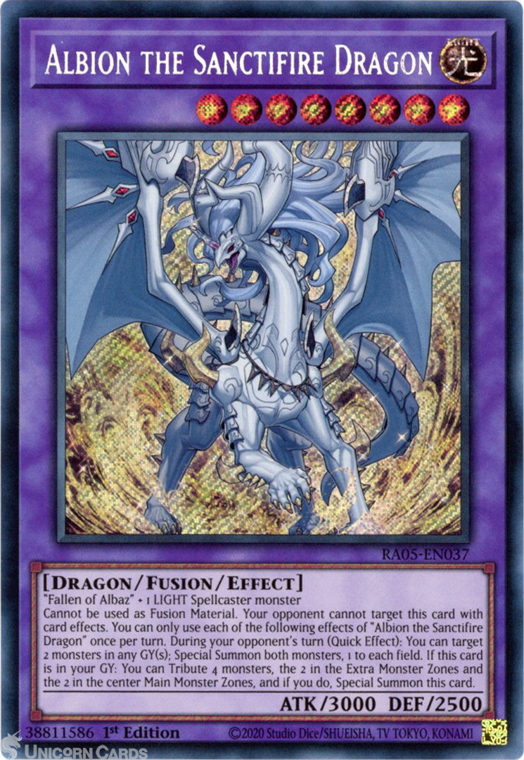 - RA05-EN037 Albion the Sanctifire Dragon : Secret Rare 1st Edition Mint YuGiOh Card