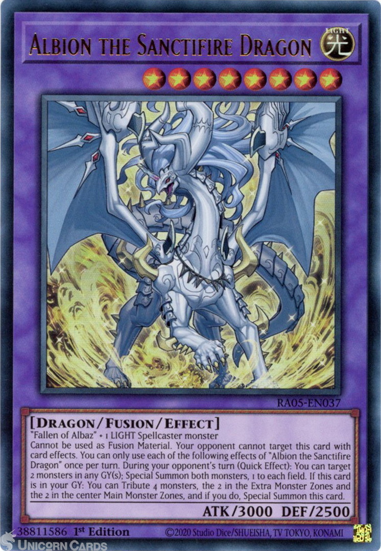 - RA05-EN037 Albion the Sanctifire Dragon : Ultra Rare 1st Edition Mint YuGiOh Card