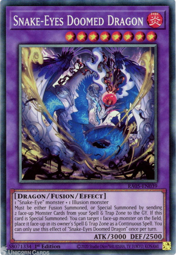 - RA05-EN039 Snake-Eyes Doomed Dragon : Collector's Rare 1st Edition Mint YuGiOh Card