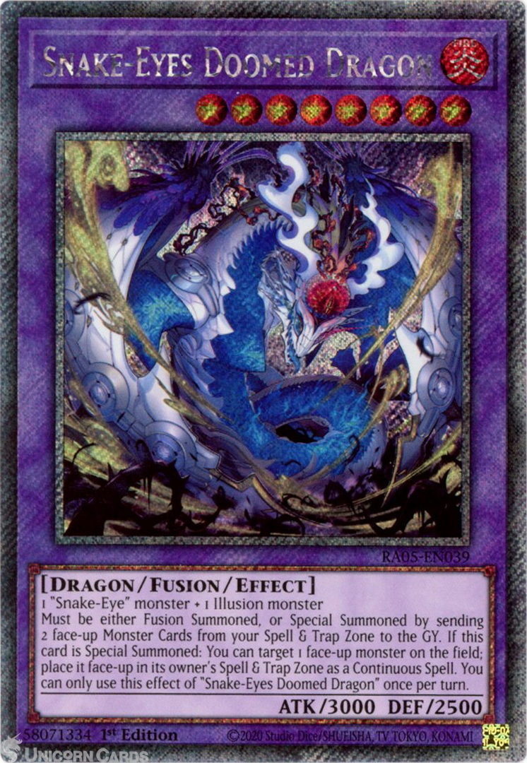 - RA05-EN039 Snake-Eyes Doomed Dragon : Platinum Secret Rare 1st Edition Mint YuGiOh Card