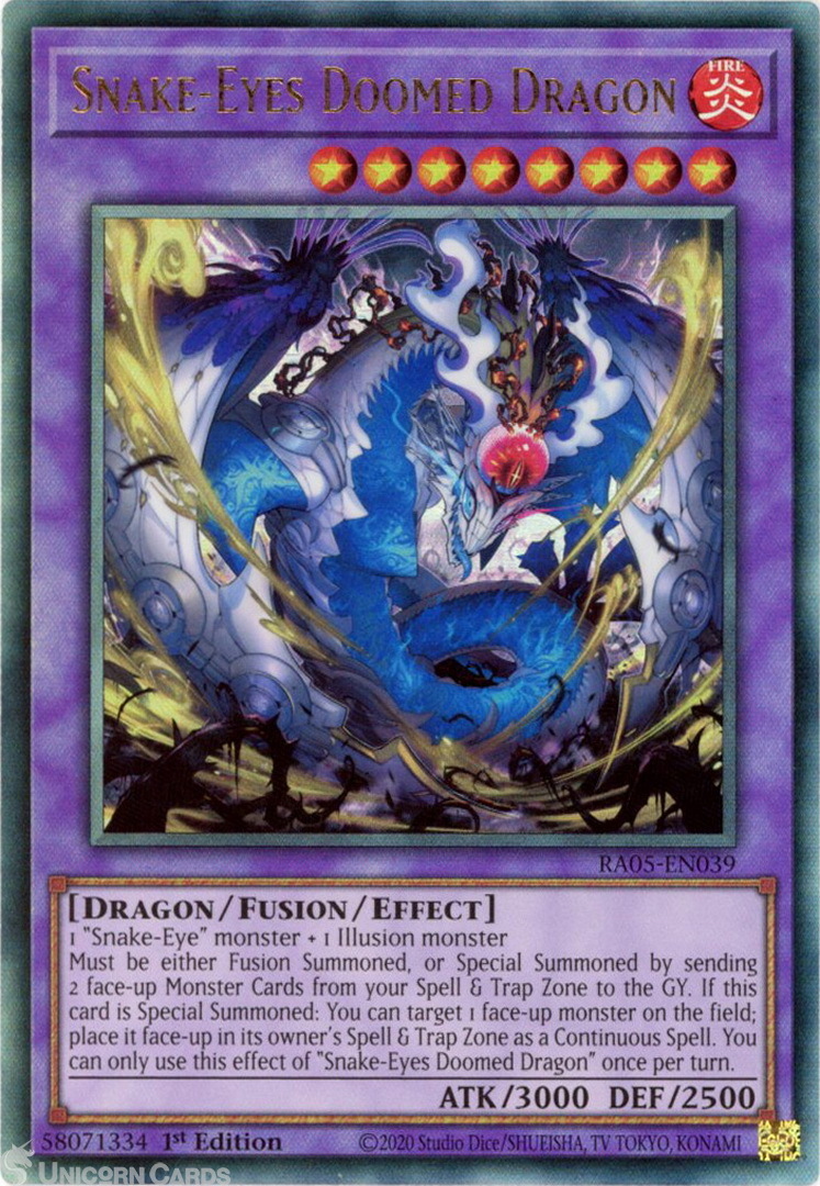 - RA05-EN039 Snake-Eyes Doomed Dragon : Ultimate Rare 1st Edition Mint YuGiOh Card