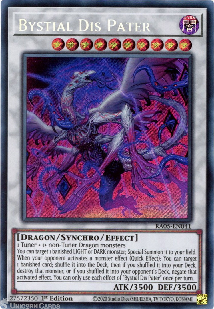 - RA05-EN041 Bystial Dis Pater : Secret Rare 1st Edition Mint YuGiOh Card
