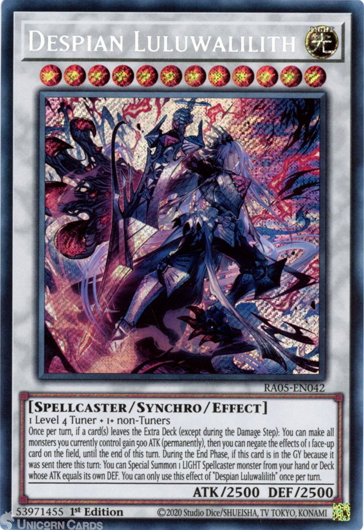 - RA05-EN042 Despian Luluwalilith : Secret Rare 1st Edition Mint YuGiOh Card
