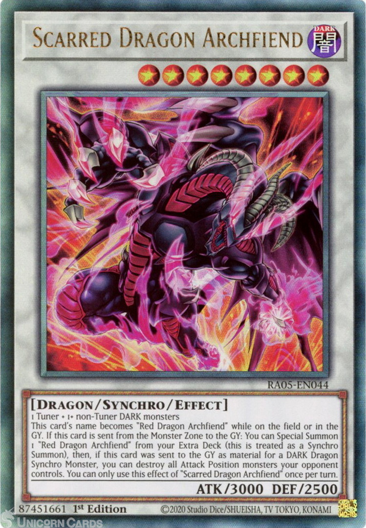 - RA05-EN044 Scarred Dragon Archfiend : Ultimate Rare 1st Edition Mint YuGiOh Card