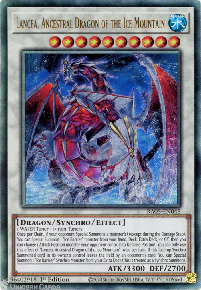 - RA05-EN045 Lancea, Ancestral Dragon of the Ice Mountain : Ultimate Rare 1st Edition Mint YuGiOh Card