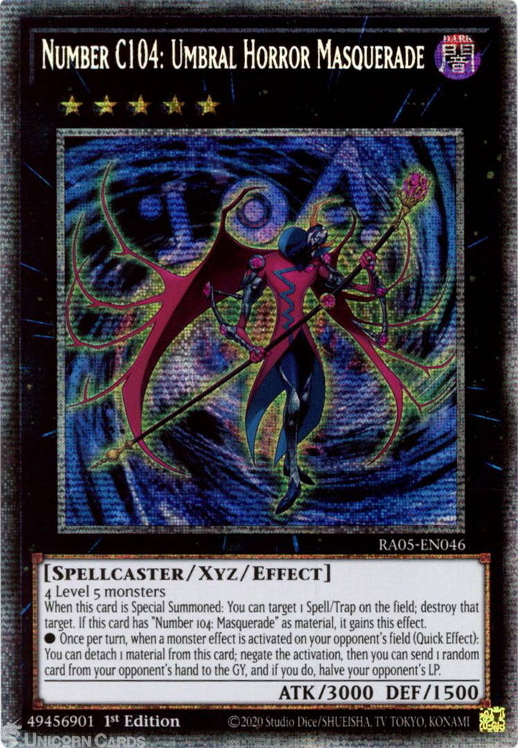 - RA05-EN046 Number C104: Umbral Horror Masquerade : Starlight Rare 1st Edition Mint YuGiOh Card