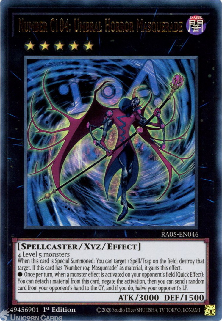 - RA05-EN046 Number C104: Umbral Horror Masquerade : Ultra Rare 1st Edition Mint YuGiOh Card