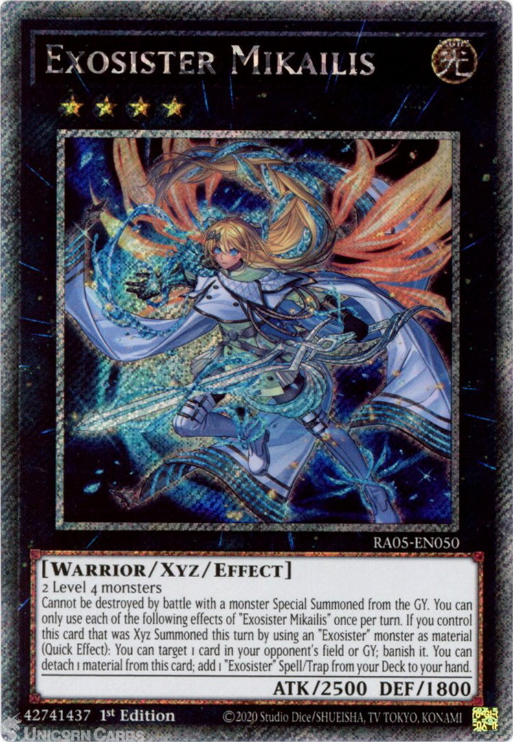 - RA05-EN050 Exosister Mikailis : Platinum Secret Rare 1st Edition Mint YuGiOh Card