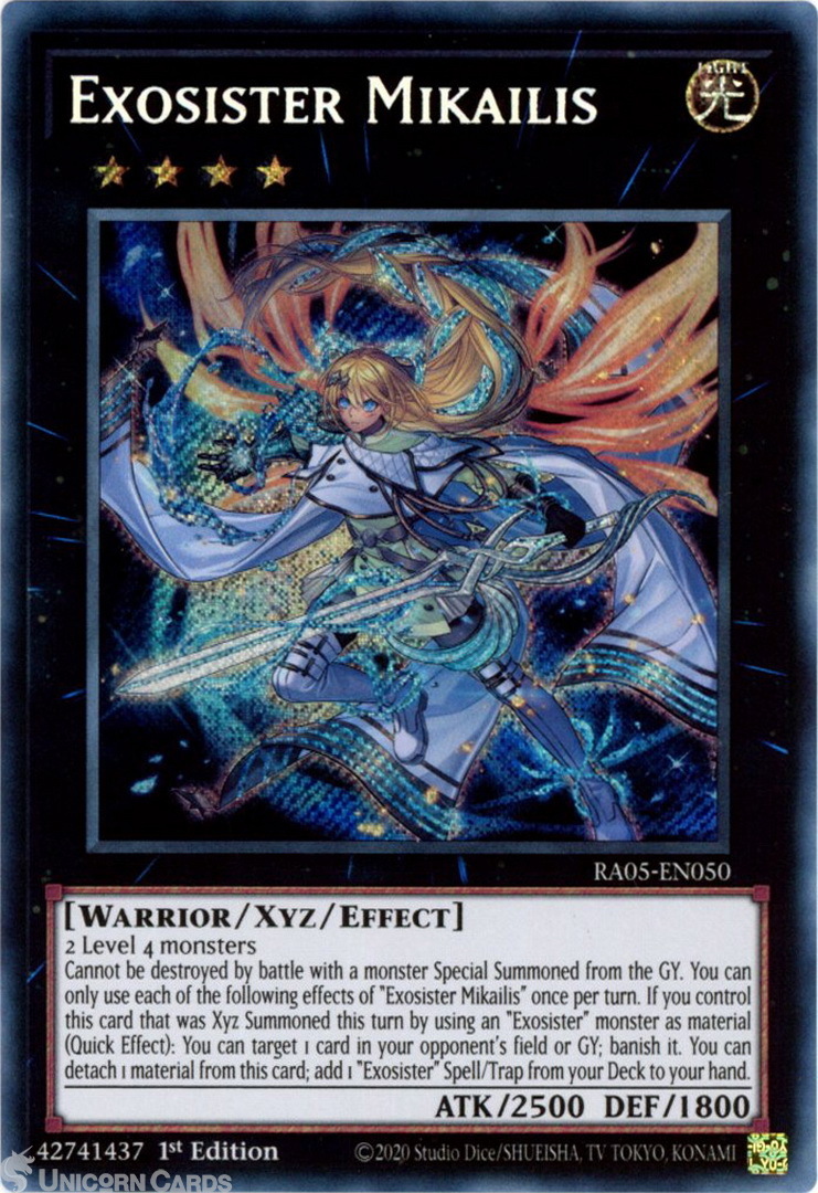 - RA05-EN050 Exosister Mikailis : Secret Rare 1st Edition Mint YuGiOh Card