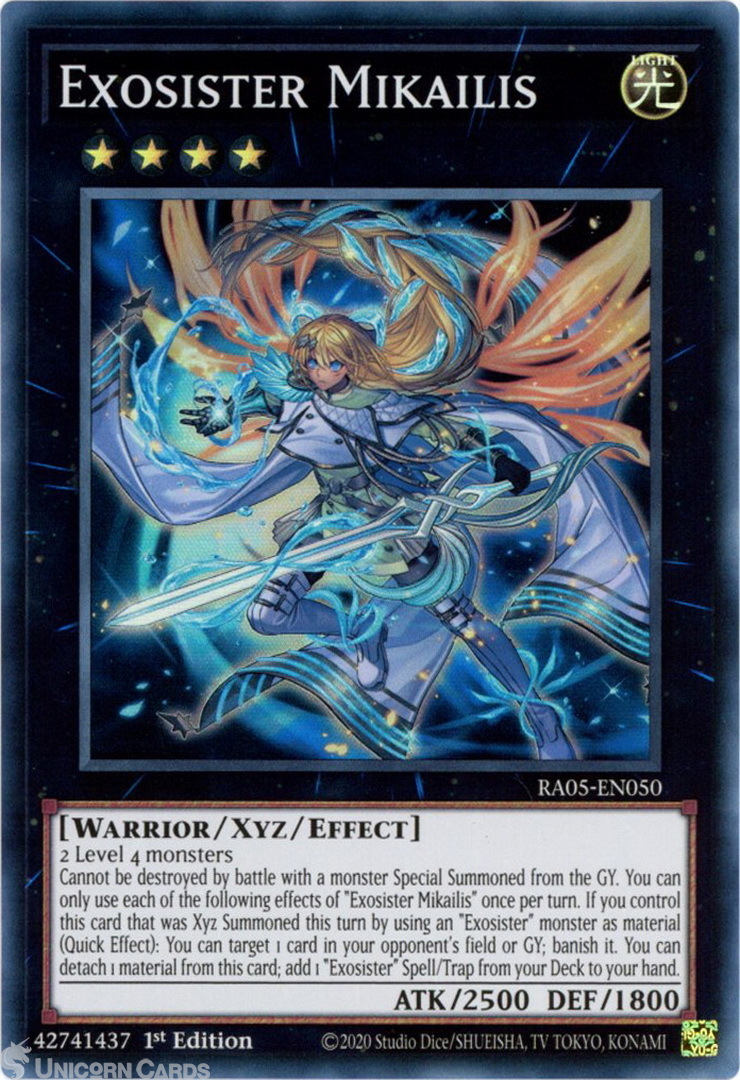 - RA05-EN050 Exosister Mikailis : Super Rare 1st Edition Mint YuGiOh Card