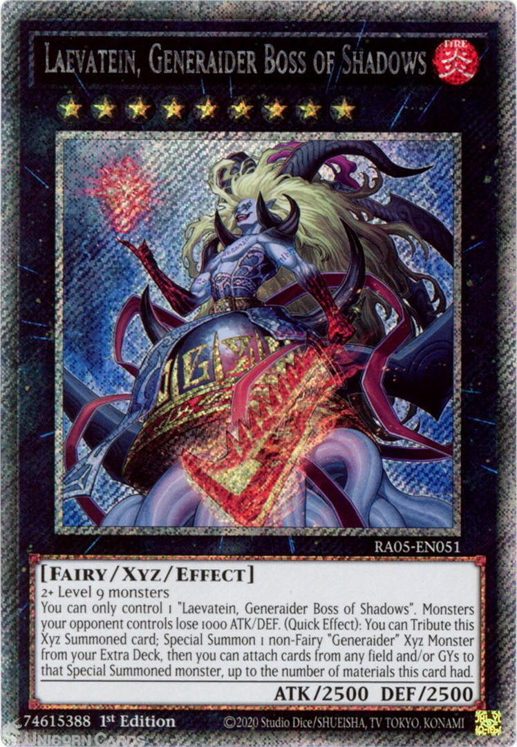 - RA05-EN051 Laevatein, Generaider Boss of Shadows : Platinum Secret Rare 1st Edition Mint YuGiOh Card