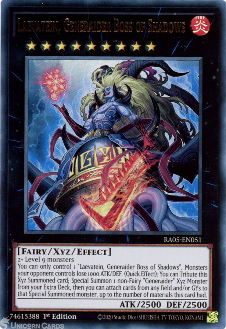 - RA05-EN051 Laevatein, Generaider Boss of Shadows : Ultra Rare 1st Edition Mint YuGiOh Card