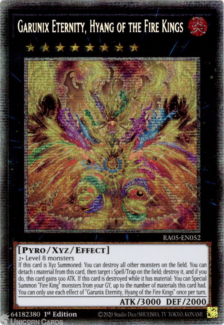 - RA05-EN052 Garunix Eternity, Hyang of the Fire Kings : Starlight Rare 1st Edition Mint YuGiOh Card