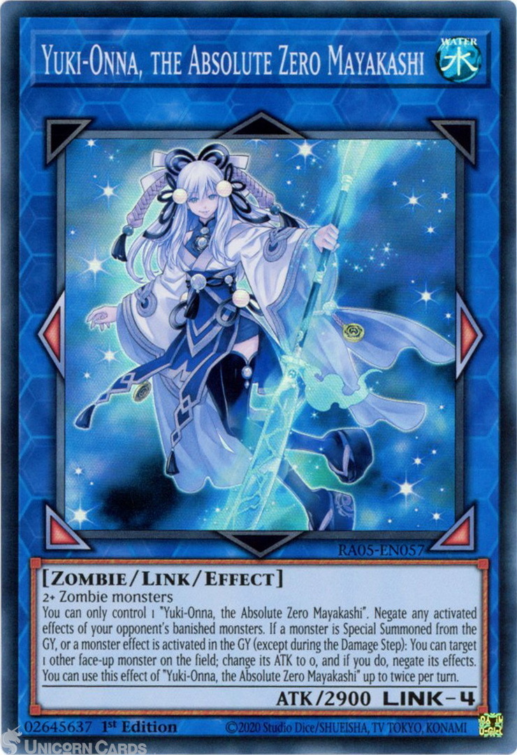 - RA05-EN057 Yuki-Onna, the Absolute Zero Mayakashi : Super Rare 1st Edition Mint YuGiOh Card