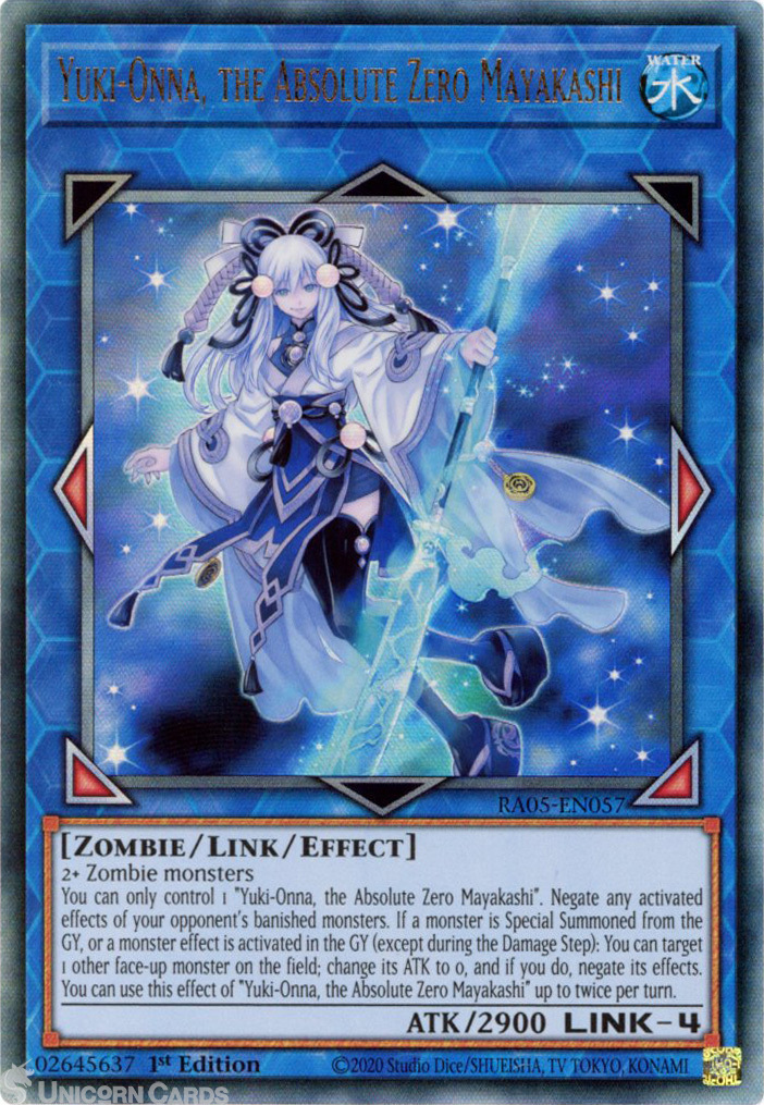 - RA05-EN057 Yuki-Onna, the Absolute Zero Mayakashi : Ultimate Rare 1st Edition Mint YuGiOh Card