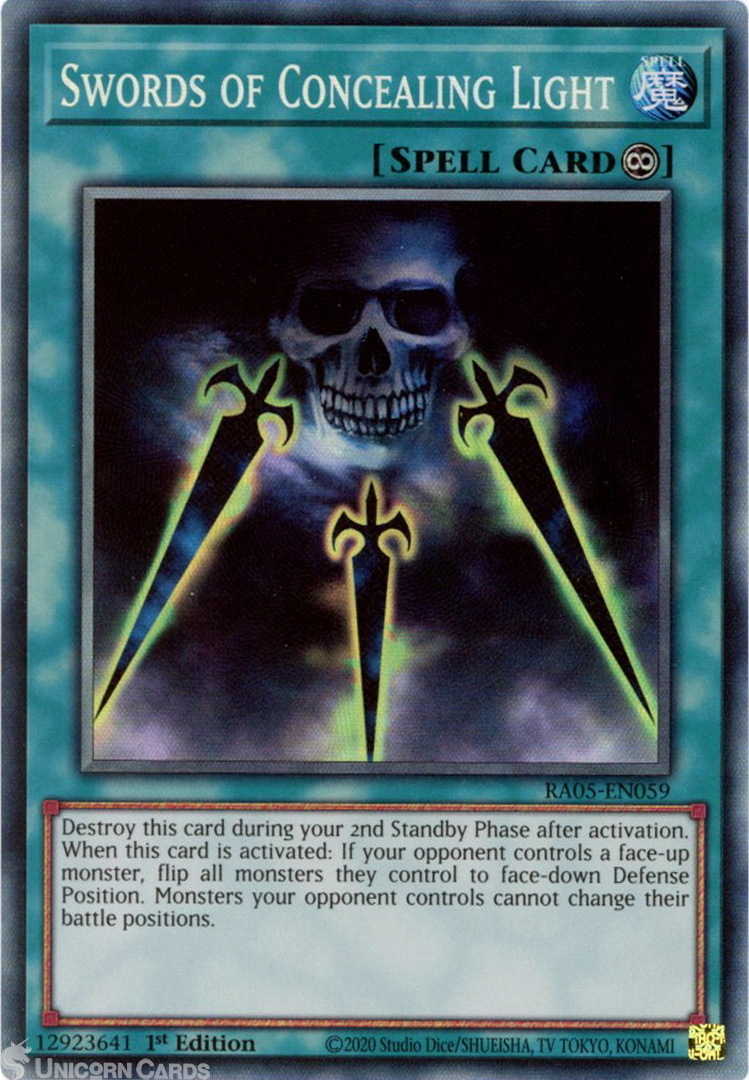 - RA05-EN059 Swords of Concealing Light : Collector's Rare 1st Edition Mint YuGiOh Card