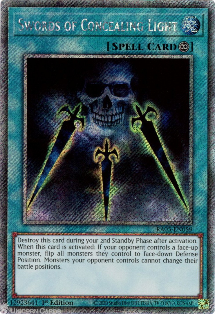 - RA05-EN059 Swords of Concealing Light : Platinum Secret Rare 1st Edition Mint YuGiOh Card