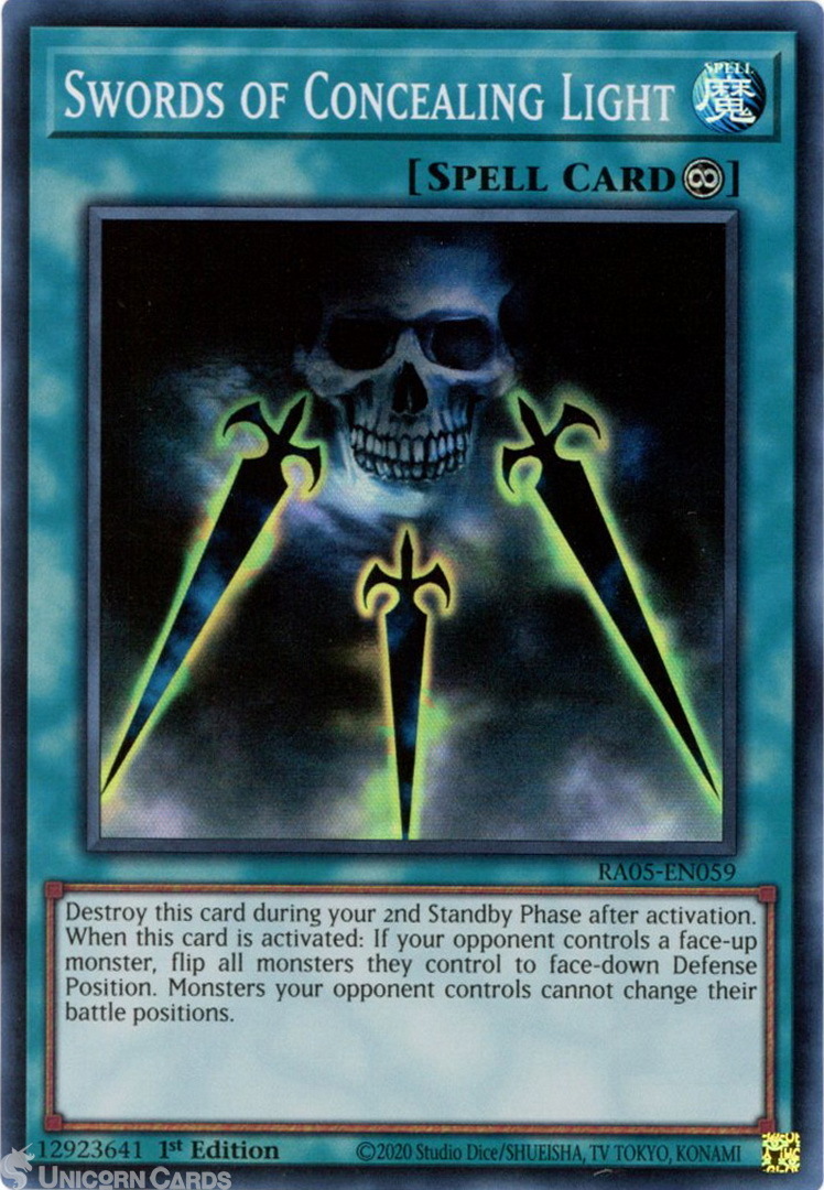 - RA05-EN059 Swords of Concealing Light : Super Rare 1st Edition Mint YuGiOh Card