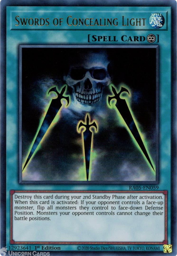- RA05-EN059 Swords of Concealing Light : Ultra Rare 1st Edition Mint YuGiOh Card