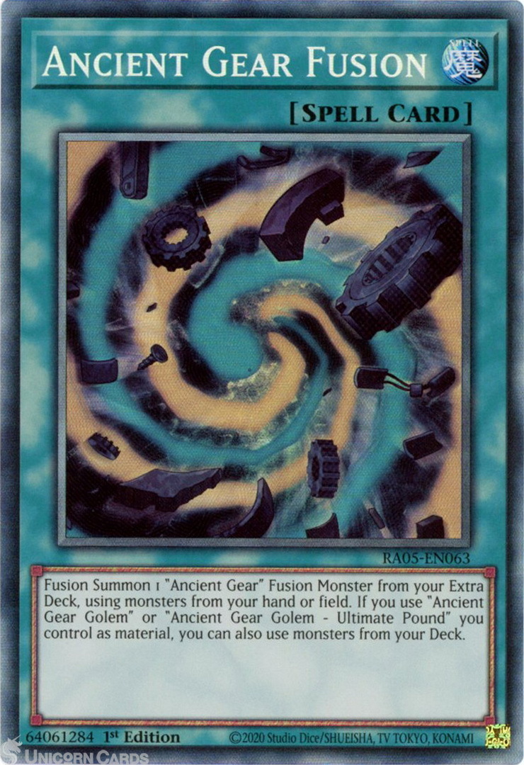 - RA05-EN063 Ancient Gear Fusion : Collector's Rare 1st Edition Mint YuGiOh Card