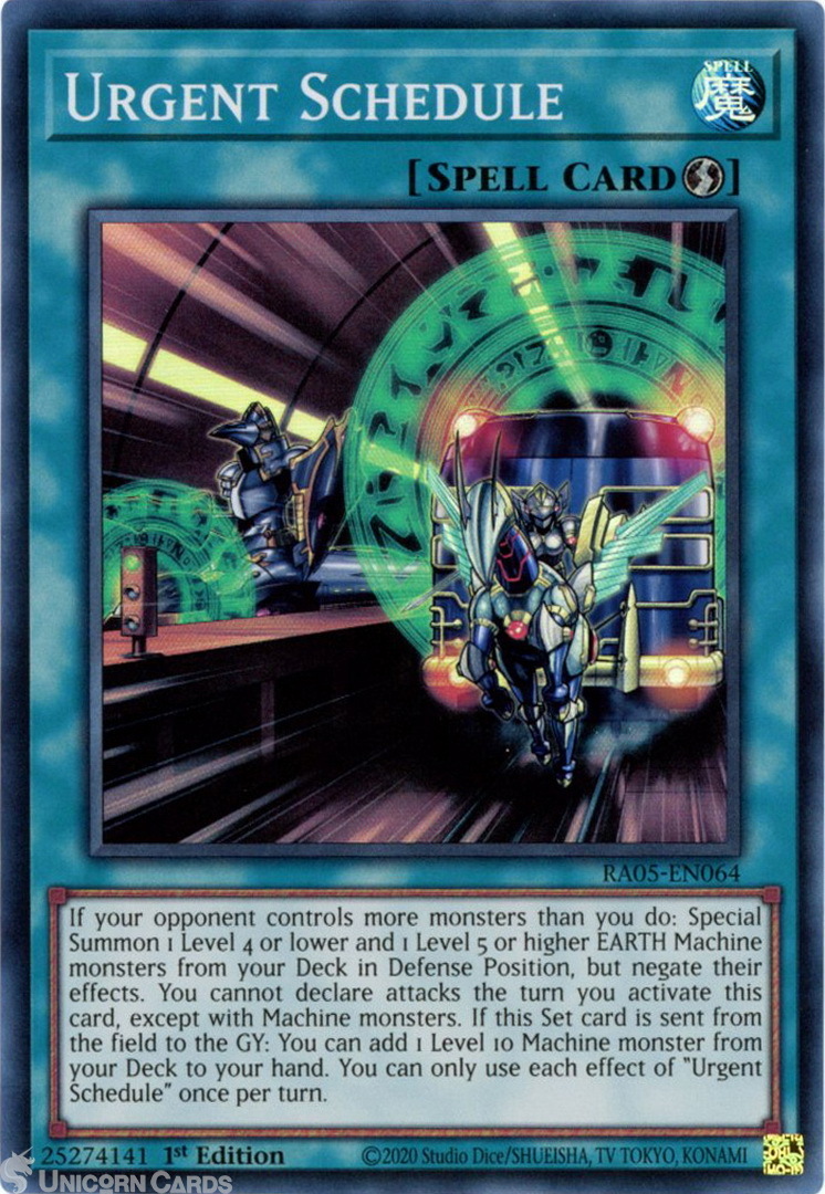 - RA05-EN064 Urgent Schedule : Super Rare 1st Edition Mint YuGiOh Card